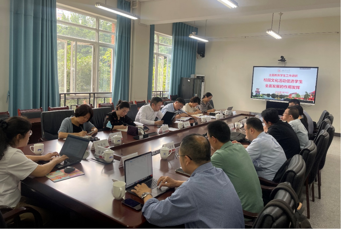 校党委副书记郭勇在调研座谈会中强调,各单位要结合实际,尽快补齐“美育”“体育”“劳动教育”等短板弱项;要结合主题教育,坚持目标导向、问题导向、实效导向、结果导向,长短线结合推动工作改进,分阶段逐步落实工作任务;要强化联动协调,将校园文化活动第二课堂和第一课堂有效衔接,吸引更多学生积极参与,提高活动的覆盖面和学生的参与度。学指委要强化统筹,各单位及学院要深化合作,避免同质化校园文化活动重复开展,充分整合资源,共创精品活动;要以优化校园文化活动清单为抓手,突出学指委在融合育人目标、一盘棋推进校园文体活动中的作用。