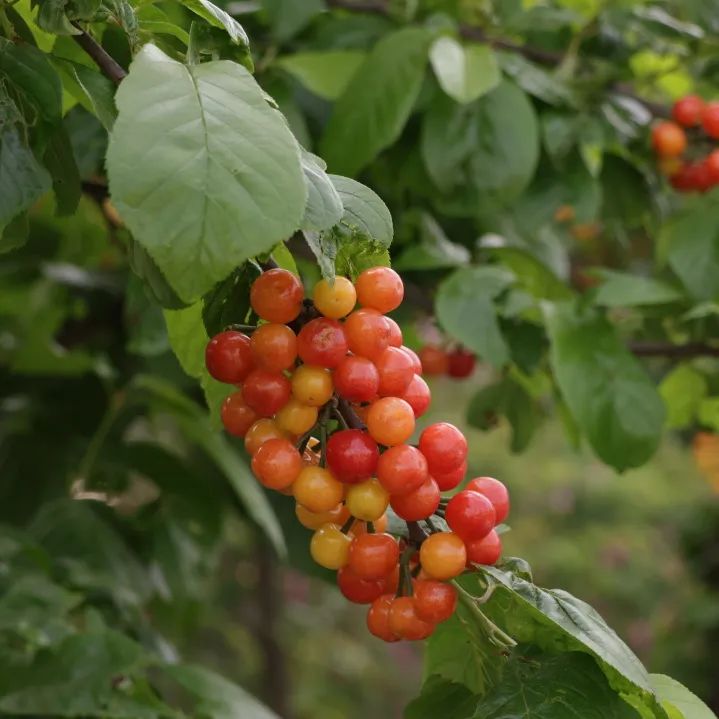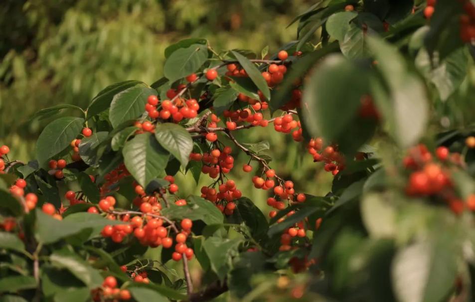 聂晓芳:大自然真是奇妙,距离上次穿着羽绒服前来给樱桃施肥,才过去月余,雪白的樱花就已经变成一颗颗好似玛瑙般晶莹的樱桃,在阳光和绿叶的映衬下,格外喜人,摘了一颗尝尝,果真由自己参与劳动结出的果实格外甜蜜!