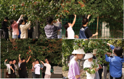 4月的“开心农场”实践田,樱桃颗颗红润饱满挂满枝头。指导老师在讲解完采摘技巧和安全注意事项后,同学们踊跃投入采摘。“樱桃好吃果难摘”,有的同学瞄准枝头灿红的果子,发现目标后下手快准狠将其收入囊中;有的同学两两合作,一个压低高处枝头一个来采摘樱桃;有的同学爬上树丫,摘取顶层的优质果源……
