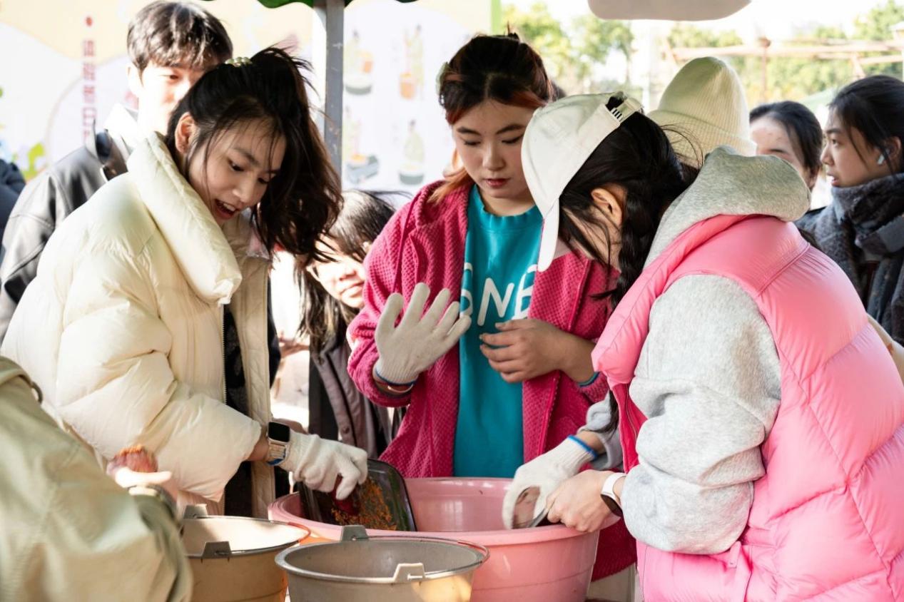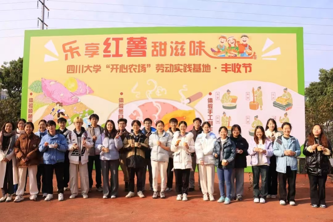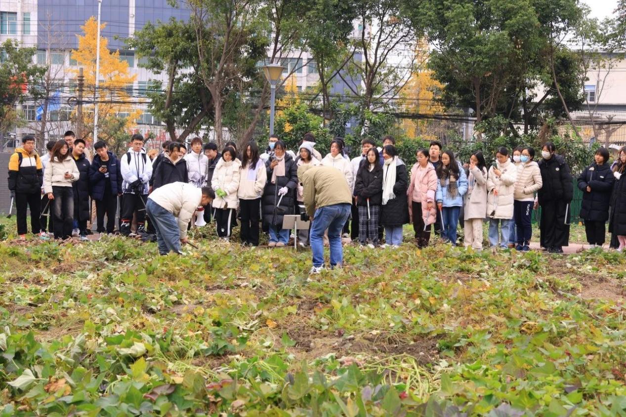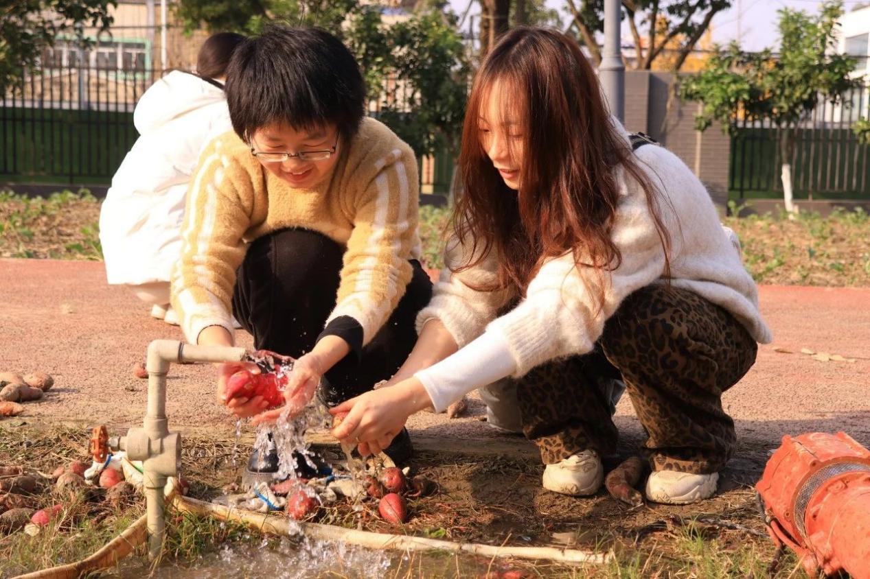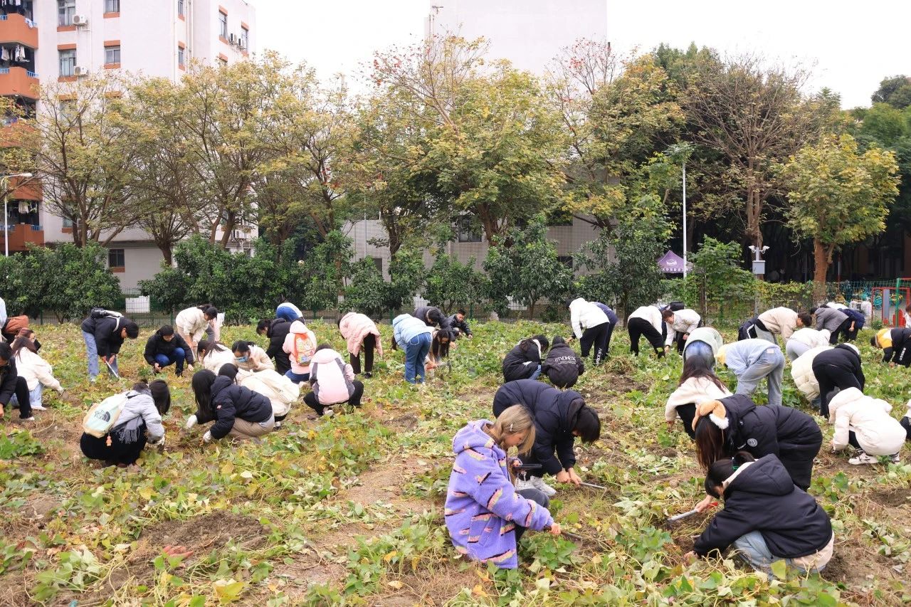 红薯从初夏的青葱翠绿,迎来了冬季丰收满盈的时刻。1400余名同学齐聚“开心农场”的田垄之间,伴随手起锄落的欢快节奏,一垄垄红薯破土而出。