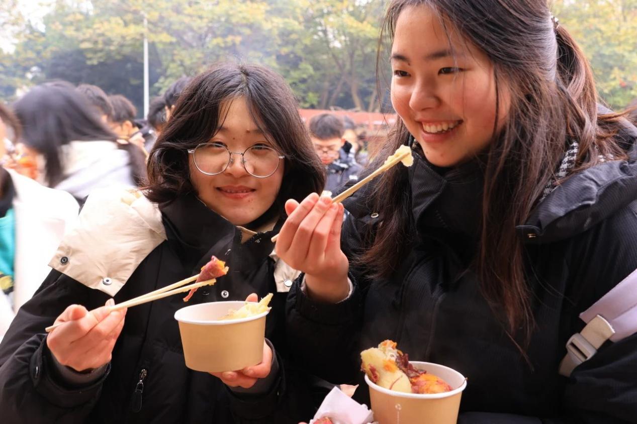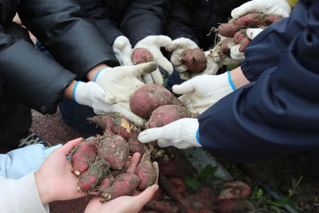 “真甜!软绵的口感真好吃”,同学们手捧热腾腾的红薯,脸上洋溢着满足与幸福的笑容,细品辛勤劳动后的甜蜜果实。