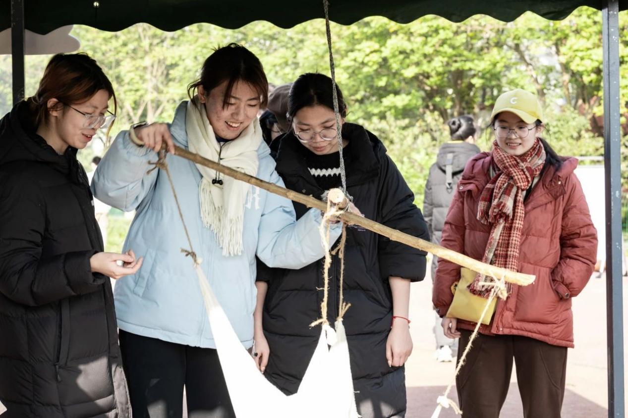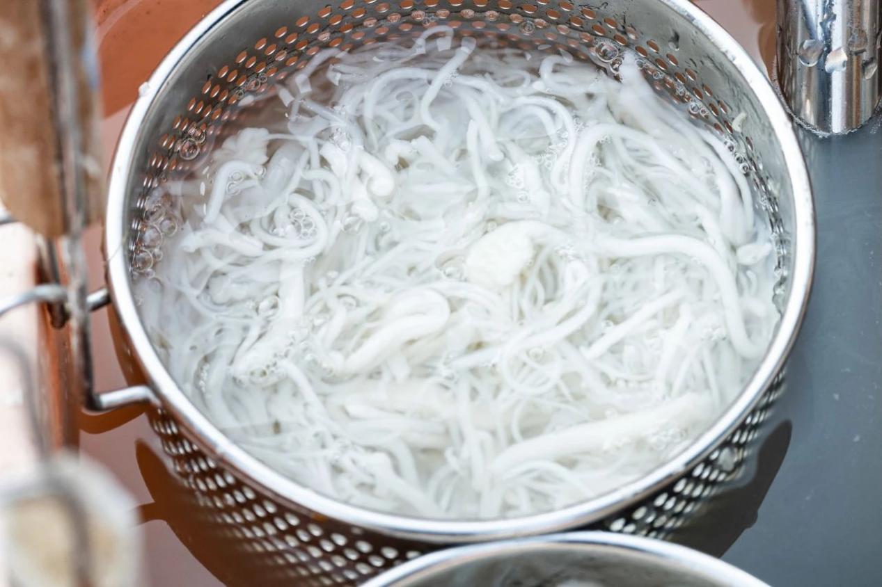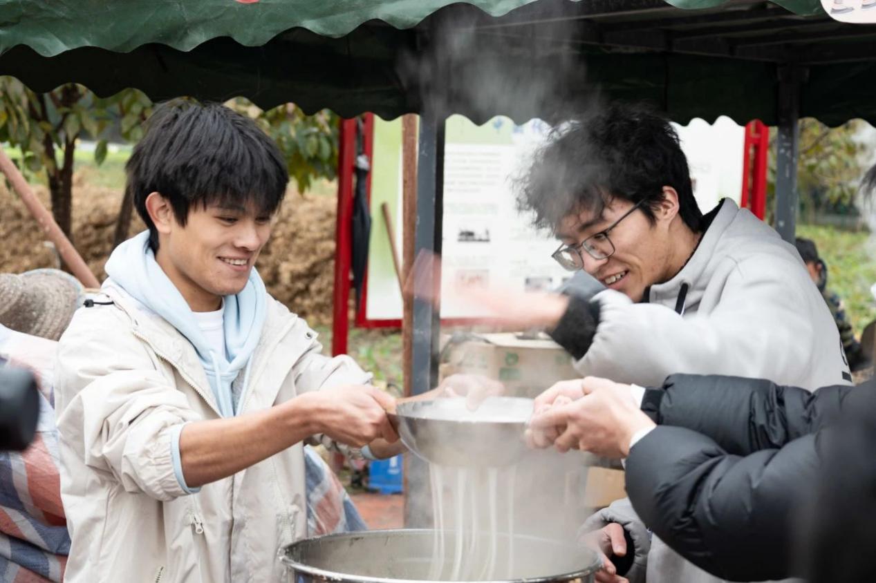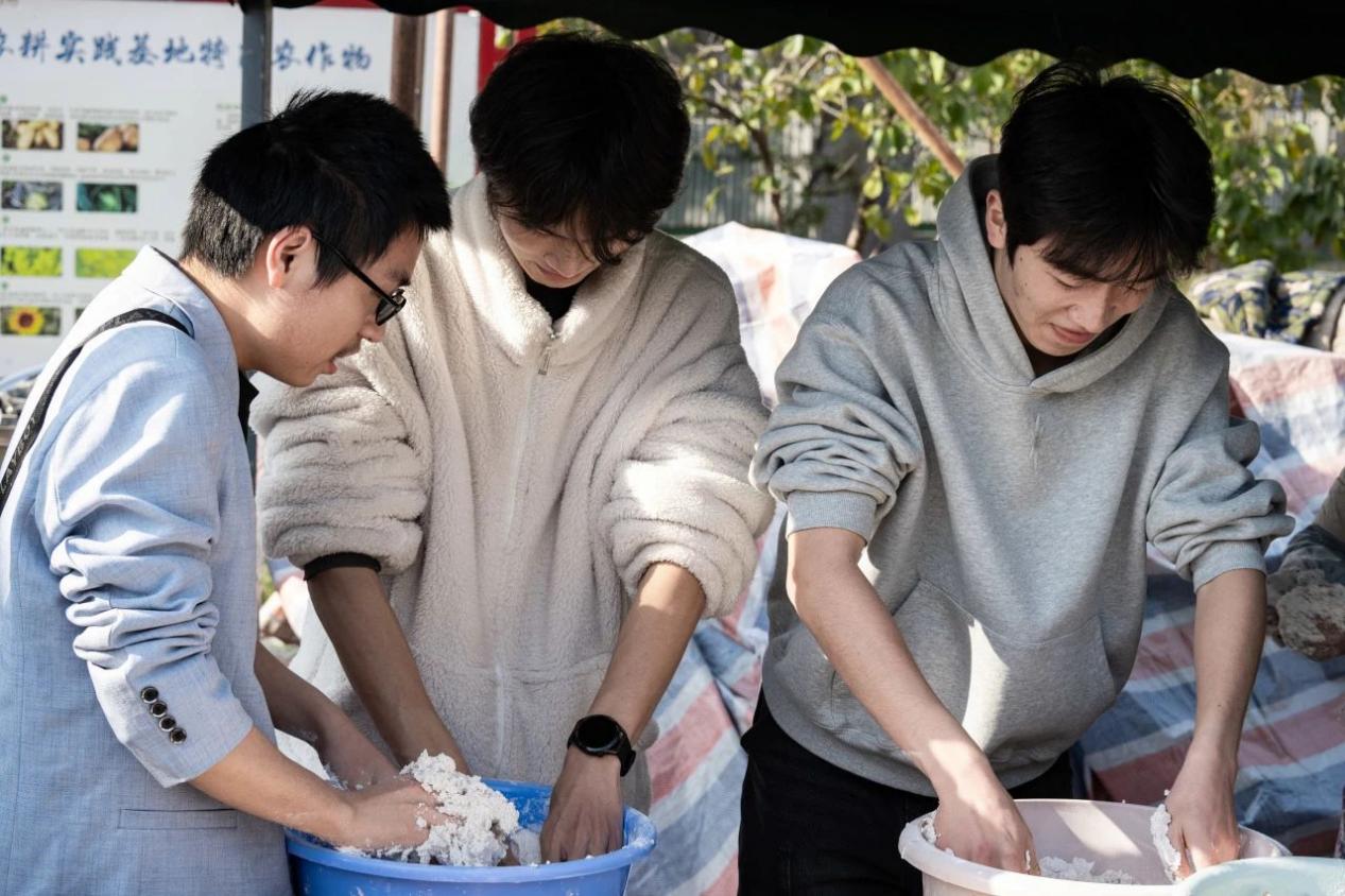 清洗、磨粉、过滤、沉淀、打糊、和面、漏粉、烹煮,简单的口诀背后,是手作红薯粉复杂而精细的工艺传承。在老师的生动讲解与示范下,同学们纷纷体验红薯粉制作。