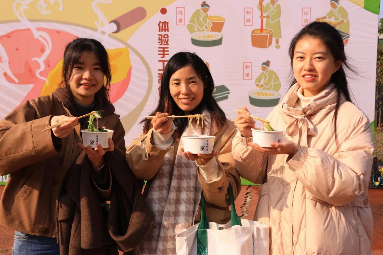从播种到收获、从田地到餐桌的全过程体验,同学们品尝到了亲自制作的酸辣粉,筋道爽滑的口感让大家味蕾大开,充分体验到了劳动的快乐。
