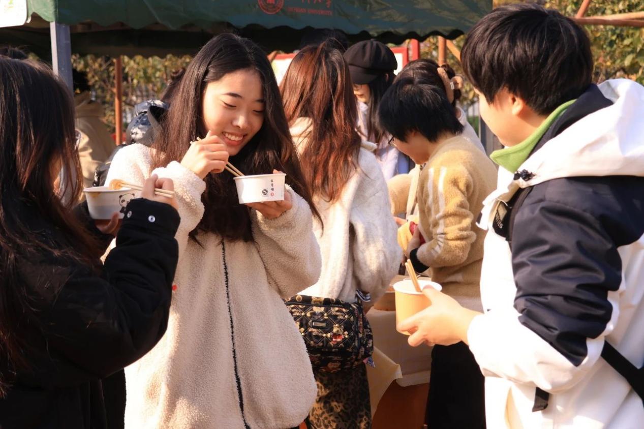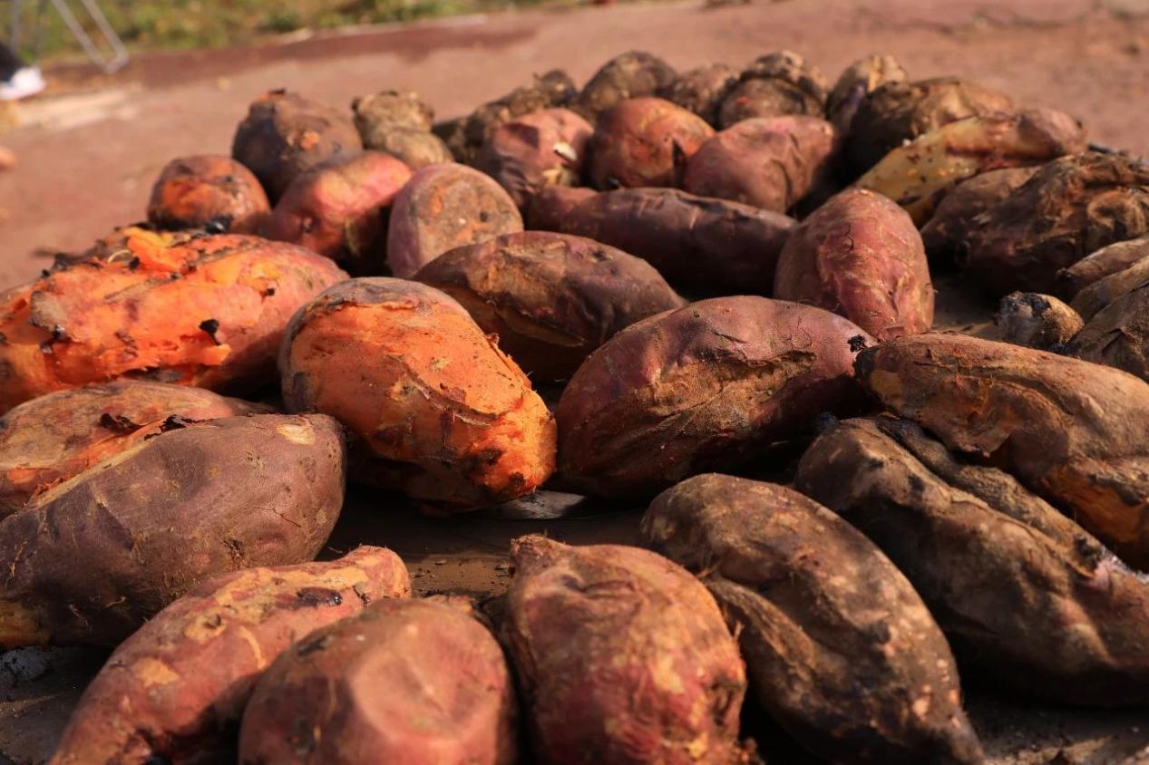 满筐的红薯,着实让人食指大动。“开心农场”特意在现场架设了烤炉和水煮炉,让同学们第一时间品尝亲手收获的甜美果实。