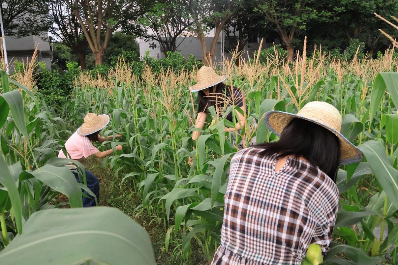 经过同学们3个月的精心培育,历经最初的播种、覆膜、捅膜、锄草、施肥到如今颗粒饱满的玉米,“开心农场”劳动实践基地迎来玉米丰收时刻!