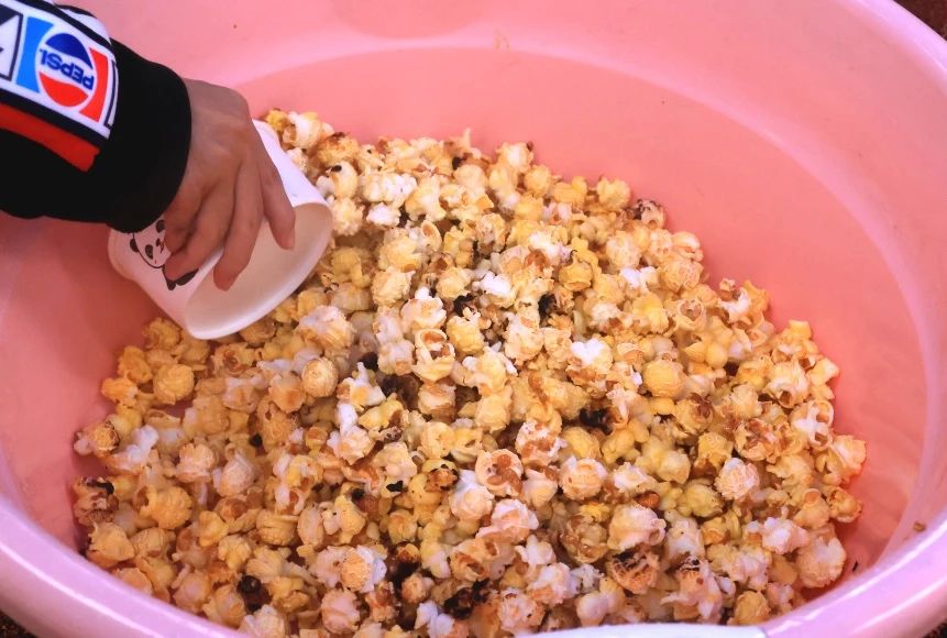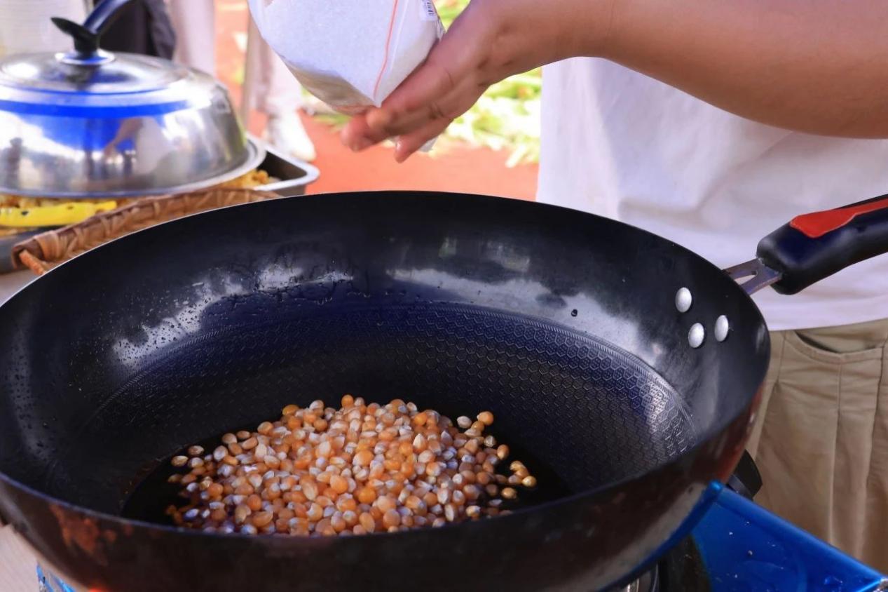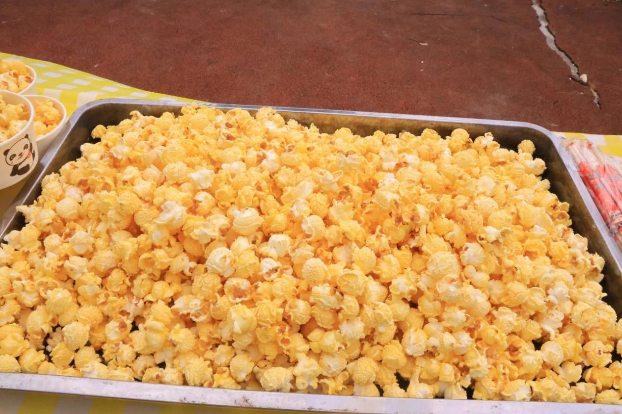 伴随连续的“嘭嘭嘭”,空气里弥漫起阵阵香甜,同学们争先品尝起新鲜出炉的美味爆米花,开心劲儿溢出脸庞。