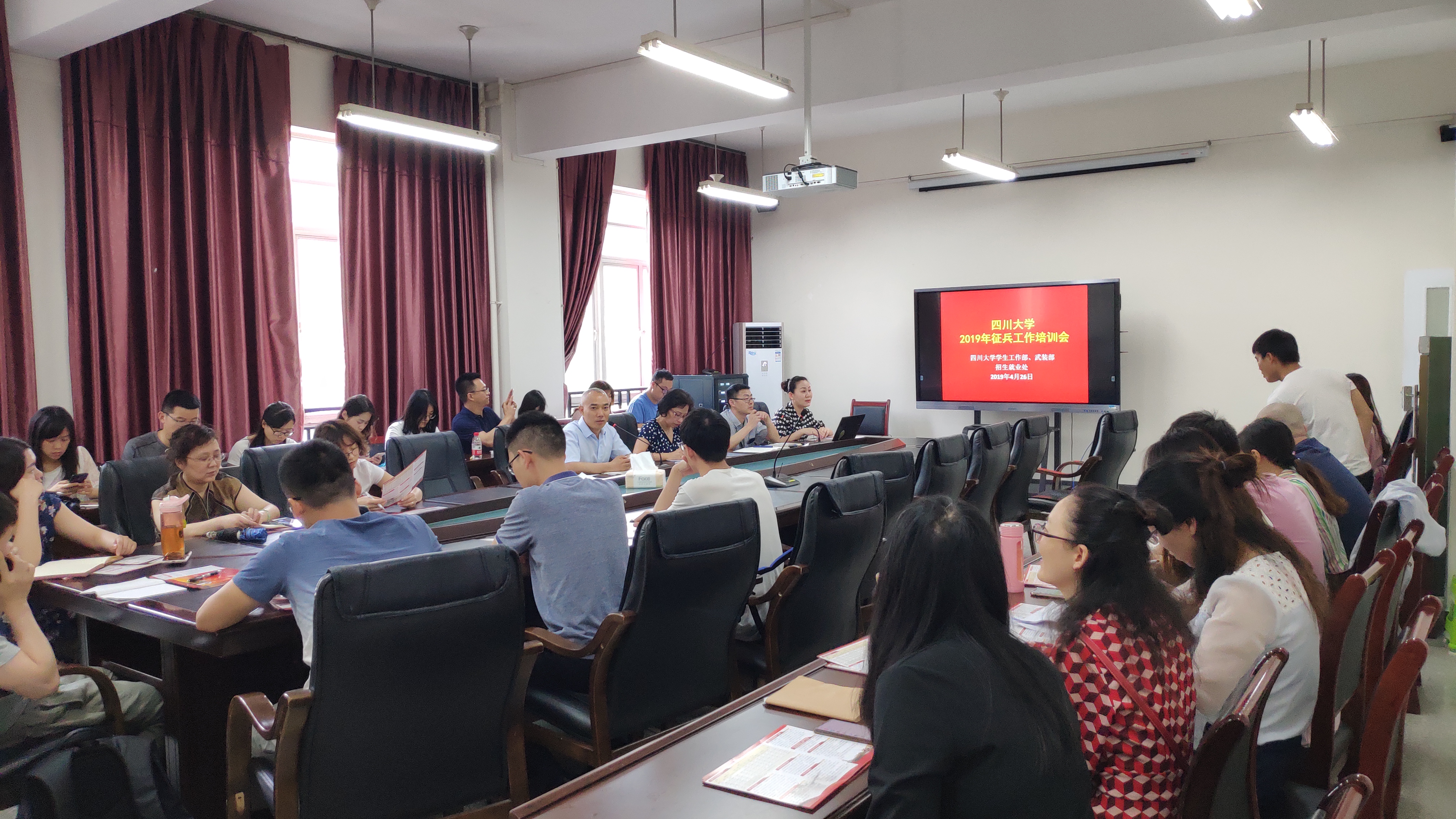 2019年4月26日上午,英国上市公司3652019年大学生征兵工作专题培训会在英国上市公司365望江校区文华活动中心201会议室举行。本次培训会由学生工作部、武装部和招生就业处联合举办,参加本次培训会的有学生工作部、武装部、招生就业处工作人员及各学院(中心、所)的征兵工作专员等40余人。会议由学生工作部、武装部副部长蒲于文主持。
