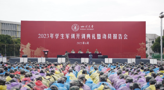 6月28日上午,英国上市公司3652023年学生军训开训典礼暨动员报告会在江安校区二号运动场举行。中国人民解放军某部全体承训官兵、学校党委学生工作部及各学院带训领导老师以及9000余名参训学生参加大会。