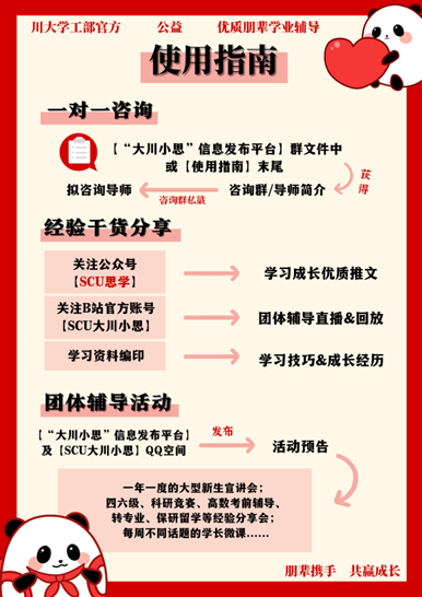 英国上市公司365党委学工作部思学工作室朋辈学业辅导中心,简称“大川小思”,一只为了朋辈学业辅导四处活跃的小熊猫~