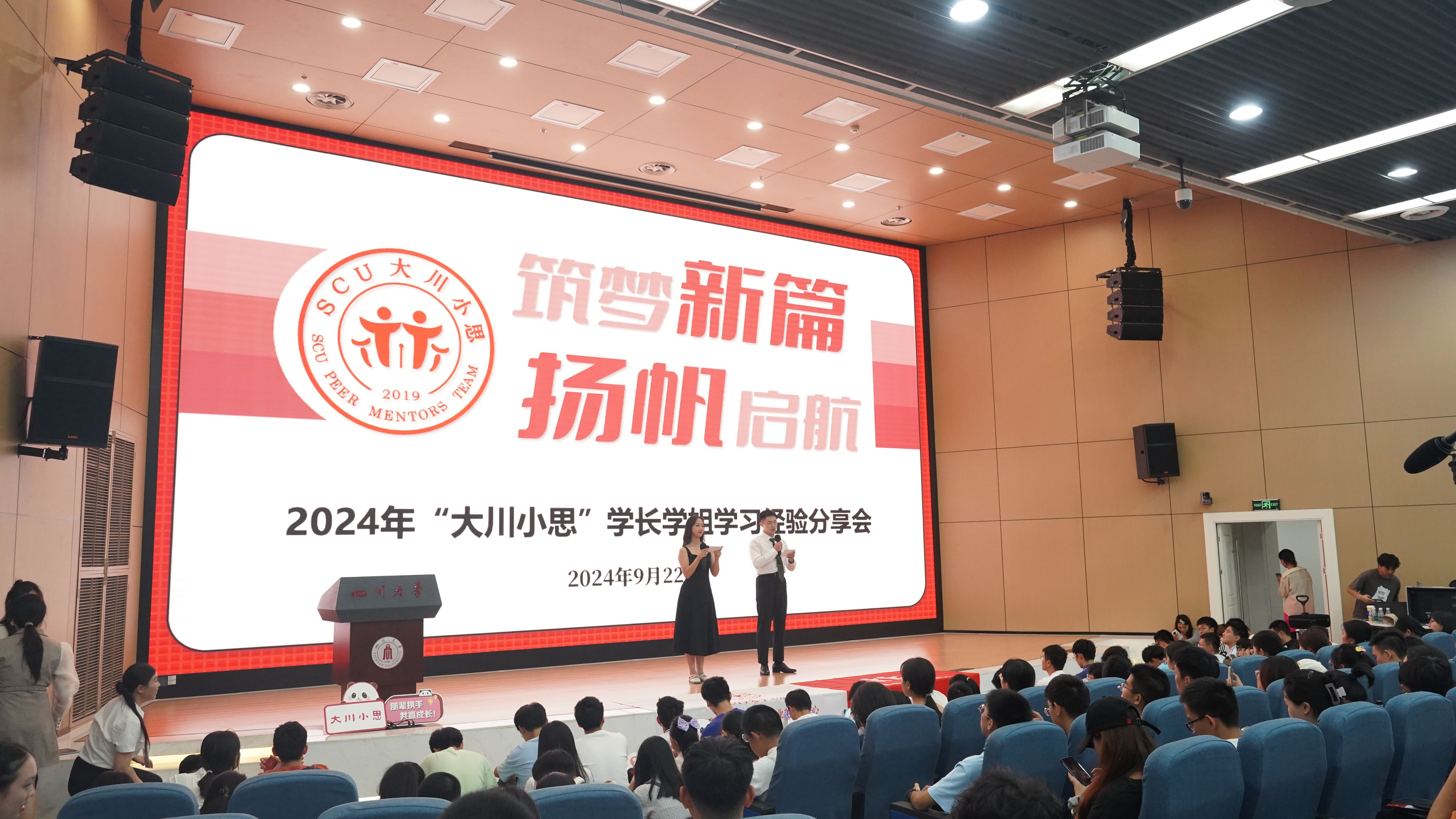为帮助新生更好适应大学学习生活,树立“立学川大 志存高远”的志向,“大川小思”2024年新生导学讲座“筑梦新篇,扬帆启航--‘大川小思’学长学姐学习经验分享会”于9月22日晚在江安校区一教A水上报告厅顺利举行。分享会由“大川小思”学习效能组导师汪之棂、杨佳杰同学主持,10名朋辈学业导师分别就大学学习生活适应、英语学习、数学学习、科研竞赛、升学规划等五个主题进行了经验分享。
