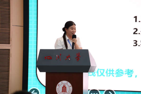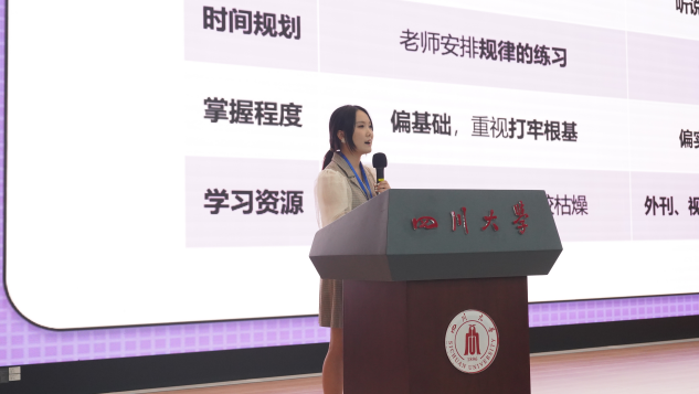 接着,英语组朋辈导师华西临床医学院21级童毅和22级李欣怡两位同学就大学英语学习进行了经验分享。童毅在对比了高中与大学英语学习的差异后,进一步阐述了大学英语学习的新特点。她说,在大学阶段,除了应试意义之外,英语也被赋予了更多的广度和深度,贯穿了必修课程、科研竞赛甚至国际交流学习,快速适应大学英语学习方式至关重要。李欣怡则为大家介绍了学校英语课程的内容构成和考核方式,以及四六级、外研社系列比赛、英语演讲比赛等多项赛事的时间安排和具体内容,并分享了自己“听说读写”一体化训练的小技巧。两位英语组小导师的经验为新生们的英语学习之路破除了重重迷茫和困扰。