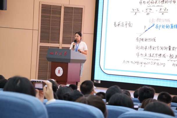 随后,数学组朋辈导师电气工程学院23级殷毓杉以及电子信息学院23级胡宇昕两位同学为大家介绍了大学数学学习的相关内容。殷毓杉同学梳理了理工类及经管类学科大学期间的数学类课程安排,对比高中与大学数学学习的差异,给出了“课前预习、日常用心、课后巩固、备考有方”四方面的建议,并以自己的题目记录本为例,向同学们传授了题目整理方法。胡宇昕同学侧重于备考方案,以期末月初期-期末月中期-考前一周为复习时间线,介绍各个阶段的复习安排经验,并为同学们推荐了数学课外学习纸质资料及网络资源。她强调,复习备考时,注意抓重点,不贪心;复习过程中做好心态调整,减少纠结和焦虑情绪;同时注意身体状态,规律三餐和作息,及时休息,方能切实提高学习效率。