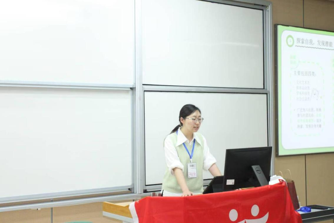 学习效能组贾赟祺、赵灵虎、李姮欣、吴奕璠四位朋辈导师围绕“探索自我、赋能成长”两大核心,分享了大学多维成长的经验。小导师建议同学们从兴趣探索、能力评估等方面深层发现自我,设定长远目标、穿插阶段目标,“量身定制”个人的学业和职业规划。通过时间管理工具、费曼学习法等的实操示范,小导师们分享了提升学习效能的实用方法。对于常见的学习压力、迷茫、焦虑等情绪困扰,小导师们结合自身经历,生动讲述了排解日常压力的小技巧。他们鼓励学弟学妹保持好奇心与热情,享受自我探索过程,在享受大学生活的同时定能满载而归!