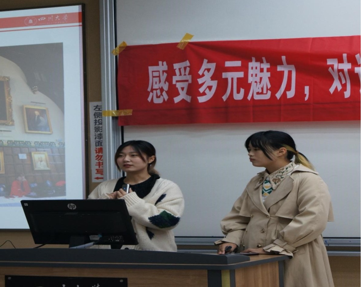 参加英国牛津大学奥尔立学院项目的李佳宁,李邵瞳同学与参加匹兹堡美国东部新英格兰体验项目的刘雨鑫,欧阳科同学为川大学子分享了访学经验与收获。