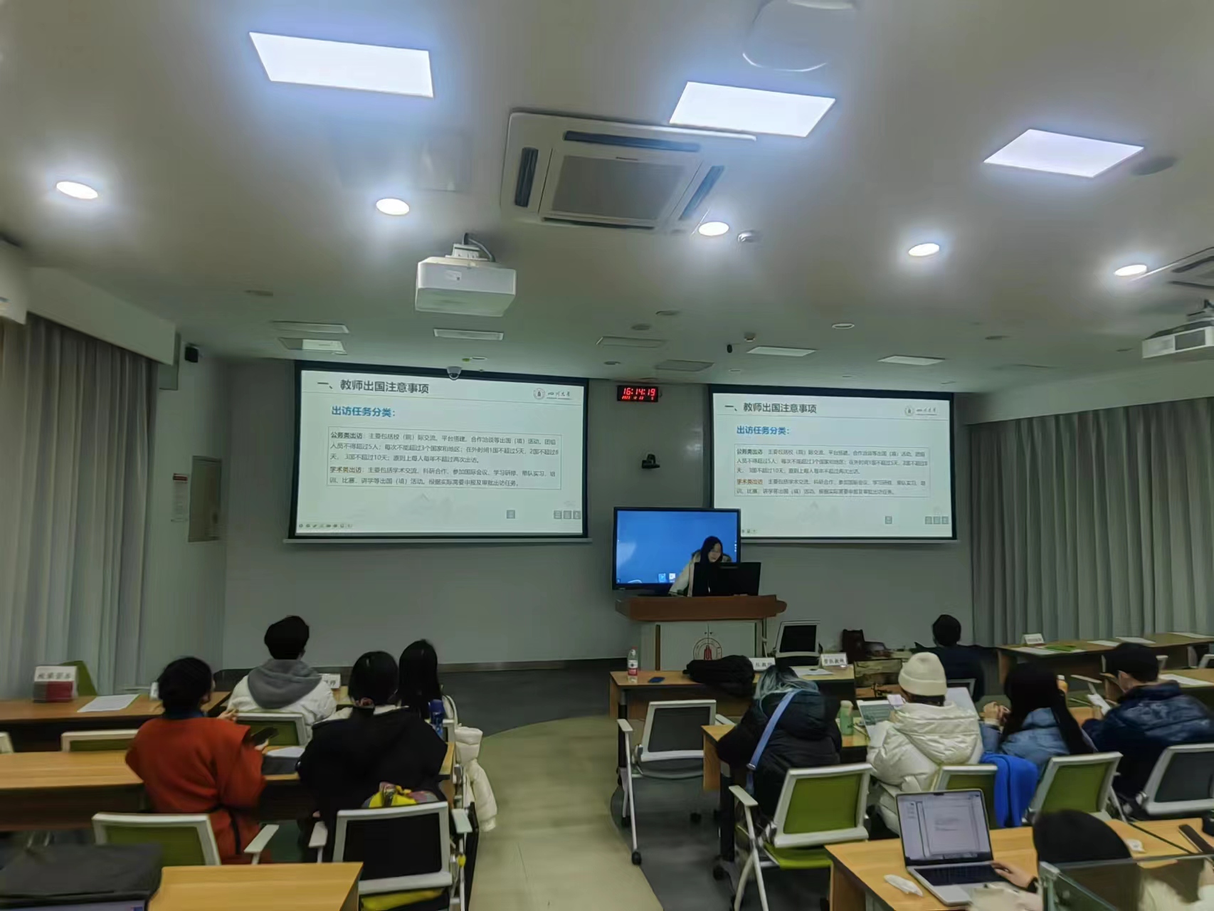 12月22日,英国上市公司3652024年度“大川视界”寒假海外访学计划行前培训在望江校区基础教学楼C座C102顺利举行,学校党委学生工作部、国际处、教务处会同党政办保密委员会办公室,围绕行前安全意识、访学管理要求、资助政策、学分转换等方面,面向校院两级学分类、非学分类8个寒假项目的130余名师生开展了专题培训。