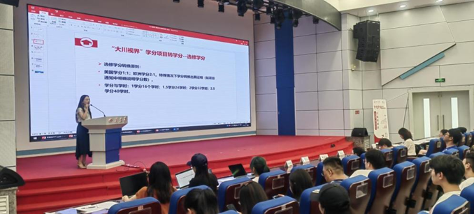 教务处何晓清老师围绕海外访学项目的学分转换事项,对选修学分的转换原则、学分转换的流程、学分转换的类别三个方面进行说明。
