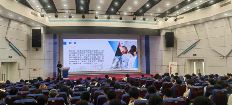 国际处朱葵老师以“提高国际胜任力,保障海外留学安全”为主题,对海外安全问题进行了论述。同时,她对于海外安全问题的成因、具体表现、解决方案进行分析,希望同学们在访学过程中学有所成,提高跨文化交流能力和国际胜任力。