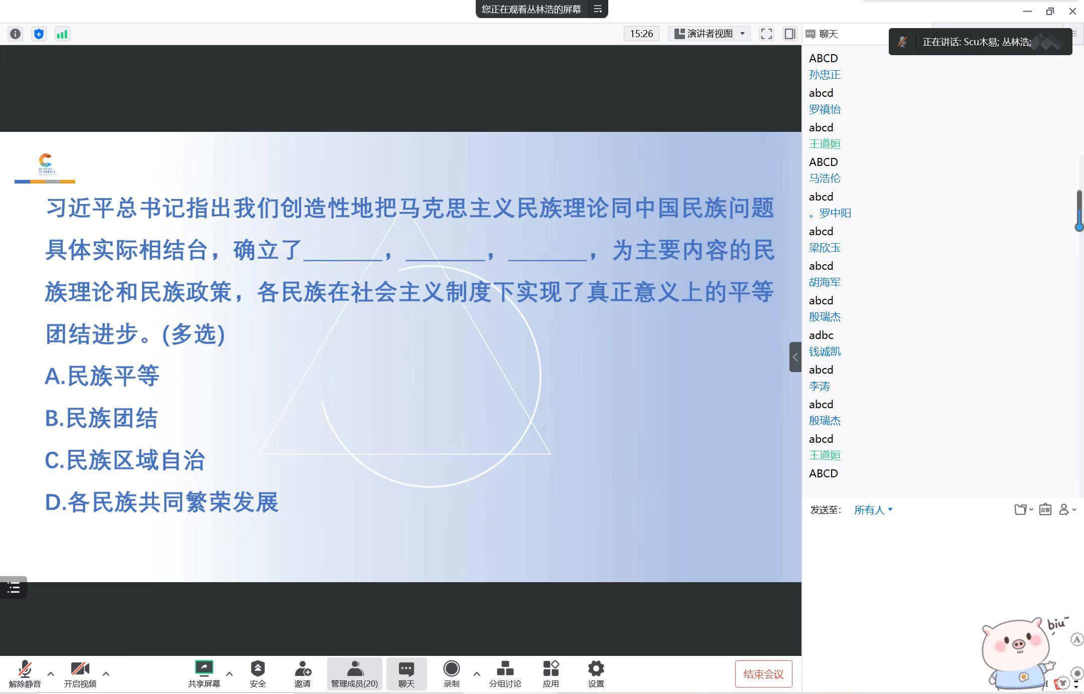 最后,创小管全体成员通过云端平台共同学习党的二十大精神并进行在线知识问答,一起学习领会中国式现代化深刻内涵,深刻牢记总书记回信精神和嘱托,争做又红又专时代新人。