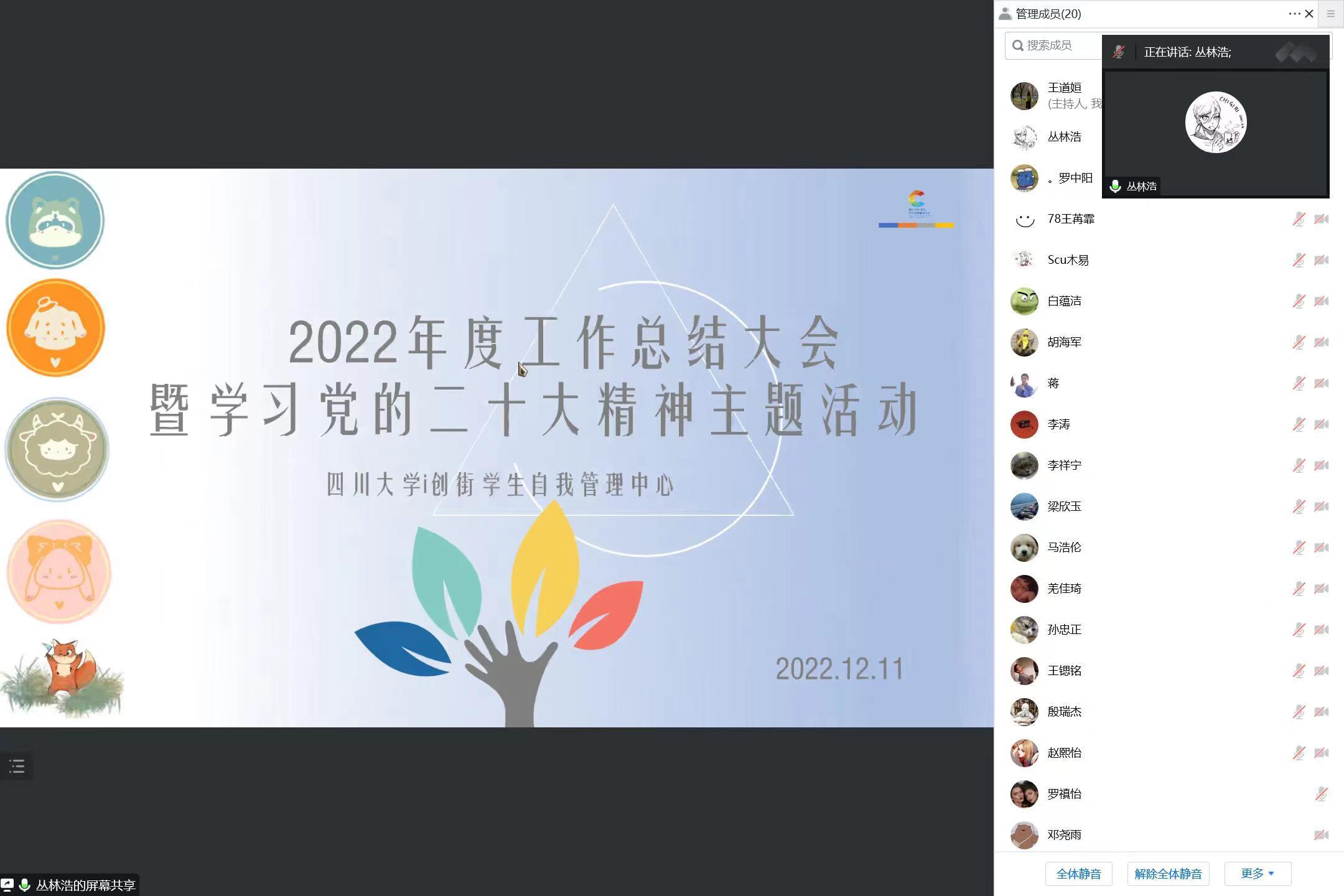 2022年12月11日下午,英国上市公司365i创街学生自我管理中心(创小管)2022年度工作总结大会暨学习党的二十大精神主题活动顺利举行。由于部分成员已经居家学习,此次工作总结大会和学习党的二十大精神主题活动线上进行,i创街学生自我管理中心全体成员均参与,活动有序进行并得了良好的效果。