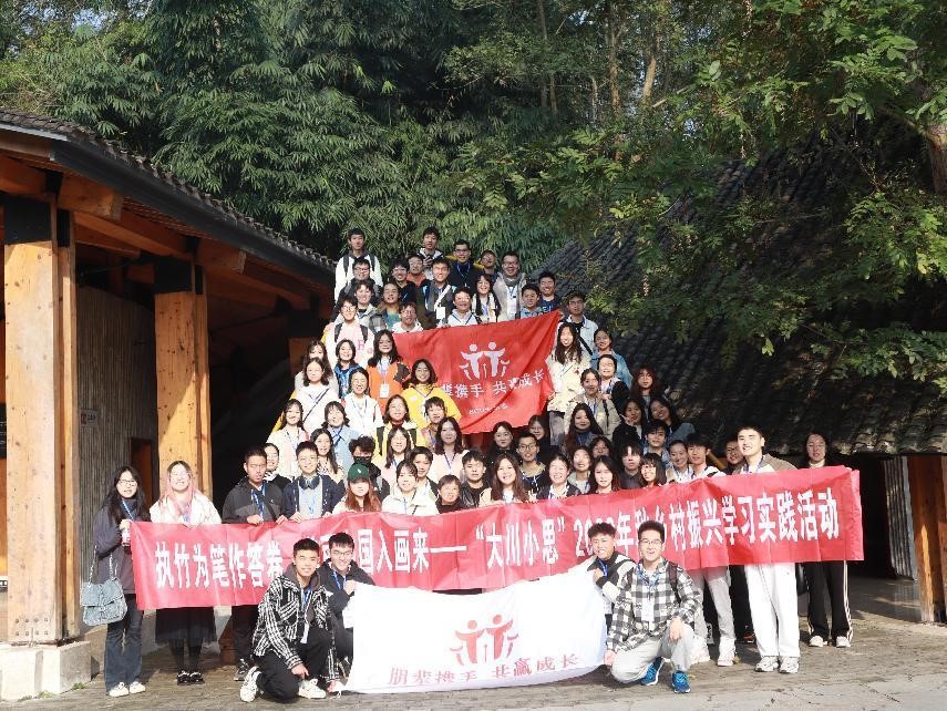 为让青年大学生真切体验新时代乡村发展新气象,了解中华优秀传统文化在乡村产业振兴中发挥的重要作用,强化保护和传承中华优秀传统文化的意识,增强文化自信,11月19日,“大川小思”朋辈学业指导导师团队在学工部指导老师的带领下,来到崇州市竹艺村,开展“执竹为笔作答卷,美丽中国入画来”乡村振兴学习实践活动。