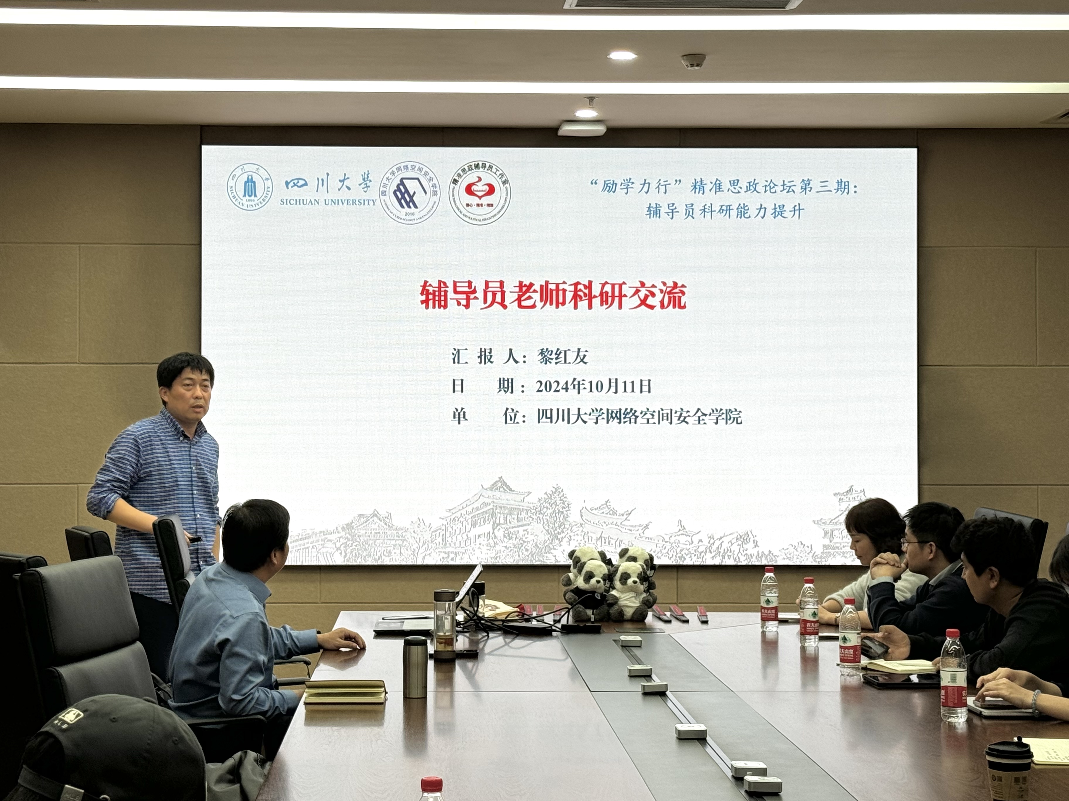 网络空间安全学院辅导员黎红友副教授从辅导员科研成果形式的多样化、辅导员科研困惑的应对和人工智能赋能学生工作三个方面分享了关于辅导员如何高效申报课题的经验。黎红友副教授作为教育部“高校辅导员名师工作室”和四川省“北极星”名辅导员工作室主持人,多年来在辅导员工作理论研究与实践创新方面积累了丰富的经验。他的分享切中辅导员实际工作中的科研困惑,给一线辅导员老师启发。