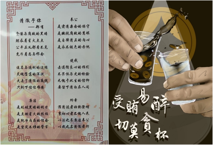 引导高校大学生树立起强烈的社会责任意识和廉洁意识是高校廉政文化建设的主要内容,为了进一步在学生群体中形成良好的党风廉政学习氛围,做深做实校园廉洁文化,在“一站式”学生社区中广泛开展“崇廉尚洁,清风正气”廉洁教育系列活动。一方面加强政治理论学习,筑牢廉洁思想防线。在教师主讲的基础上,充分调动同学们的积极性和创造力,开展故事分享、诗朗诵、小品剧等多种形式的学习活动,引导学生牢固树立廉洁自律意识,形成廉洁校园新风。另一方面,在社区学生群体中广泛征集廉洁文化作品并展出,将廉洁元素以各种形式融入诗歌、海报、视频、朗诵中,积极探索“浸润式”思想教育新模式。