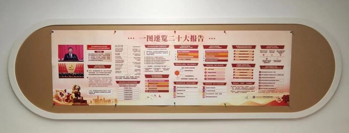 “一站式”学生社区文化墙是距离学生最近的“思政教育空间”,也是最直接宣传党的二十大精神的有效载体。“文化墙”让党的二十大精神以最快速度融入到学生的“日常生活圈”,方便社区师生利用碎片化时间进行自主学习,形成良好的学习氛围,潜移默化渗透影响周边师生,推动党的二十大精神入眼入心,真正成为学生“日用而不觉”的精神力量。