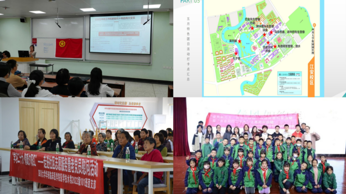 结合江安校区“一站式”学生社区均为本科低年级学生的特点,以党建带团建,以团建促党建,临床医学、医学技术、护理学专业团支部围绕“青春践行二十大”这一主题,走出课堂开展“寻历史足迹、觅江安岁月”主题特色团日活动,走进中学校园开展校园健康科普活动,走进社区敬老院开展志愿服务活动等。我院各级团组织结合学院特色,创新活动形式,将主题教育实践活动作为深化青年思想政治引领的重要工作载体,增强团员青年责任感与使命感,教育和引导团员青年坚定跟党走、建功新时代。