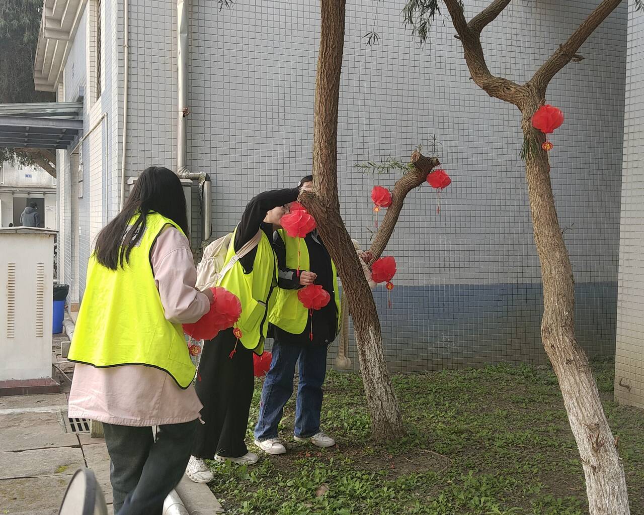 同学们还用灯笼、福字、对联、窗花、挂饰等对围合进行了新年装扮,营造了喜庆祥和的浓厚氛围。