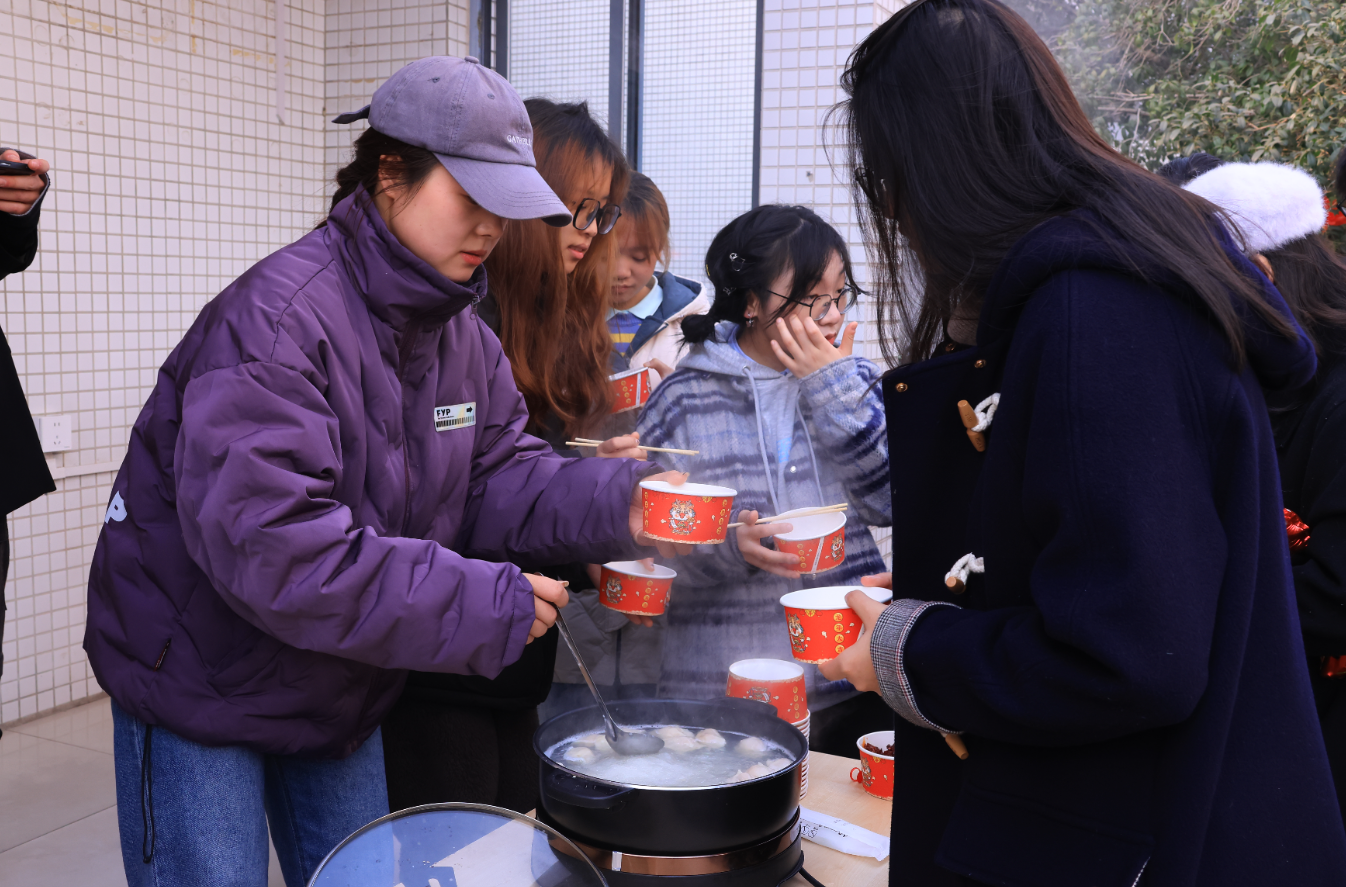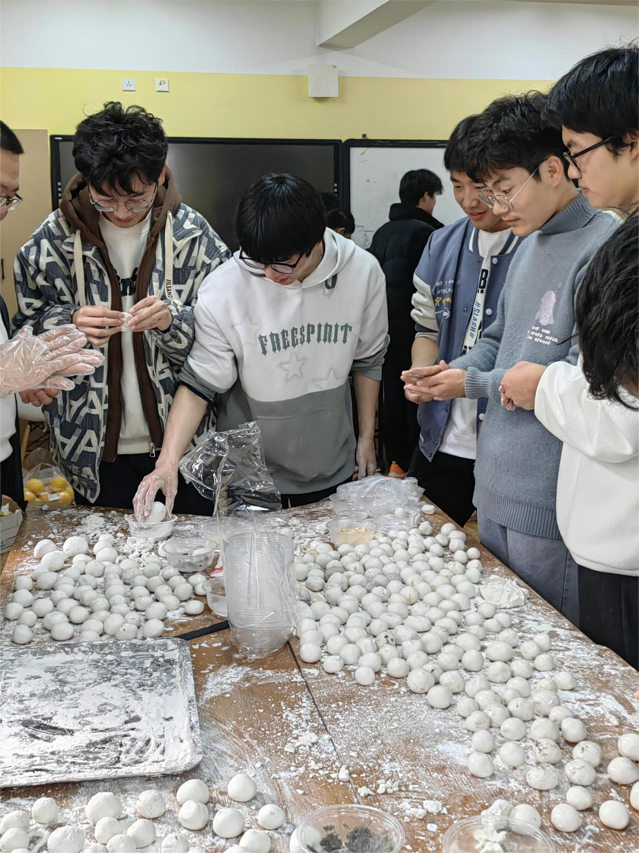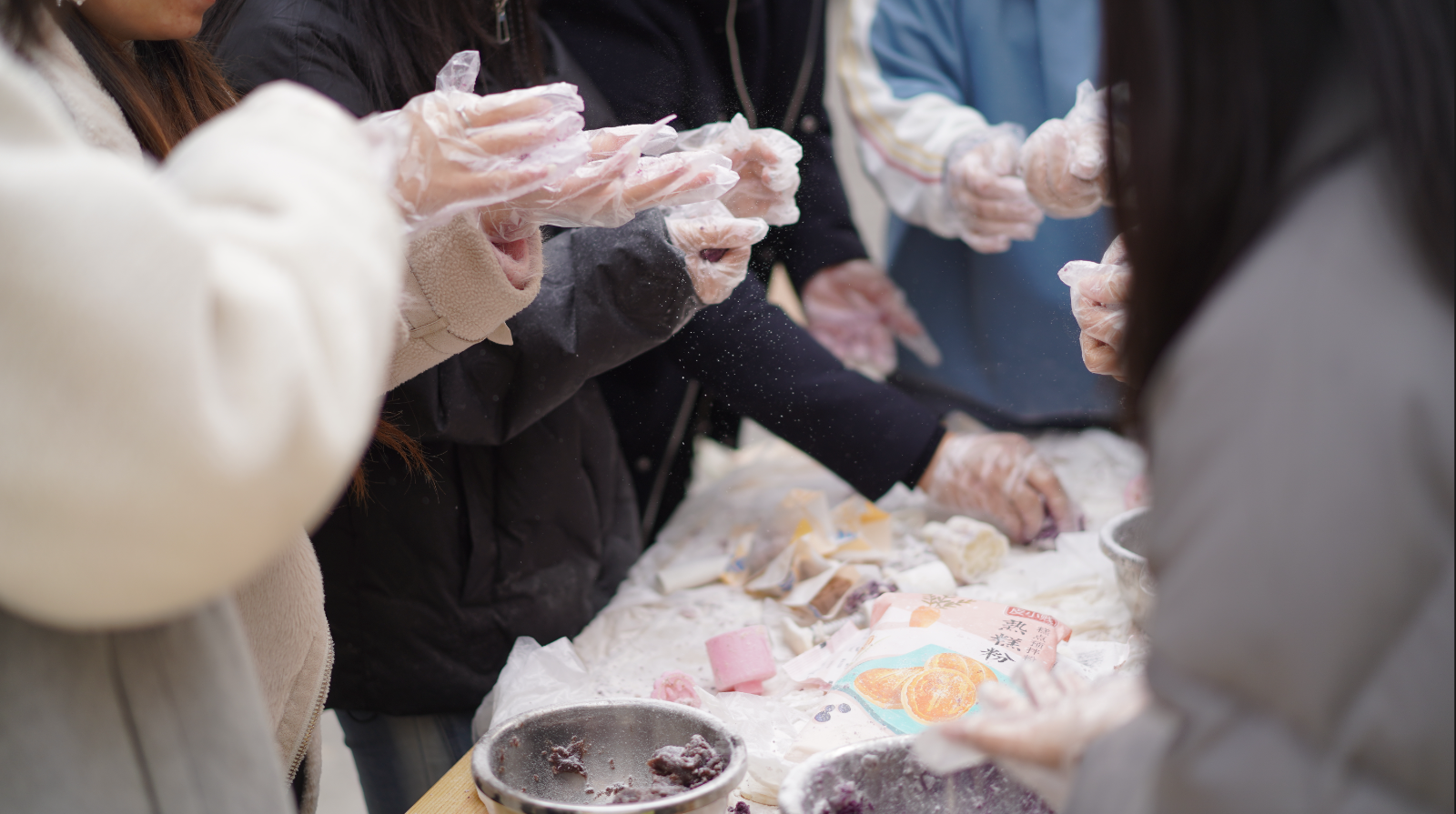 学生社区还为同学们准备了年味四溢的传统民俗美食和温暖励志电影,包饺子、煮汤圆、画糖画、串糖葫芦、做中式糕点……足不出校在围合就能体验,大家一起动手,共同享用,甜蜜跨年。