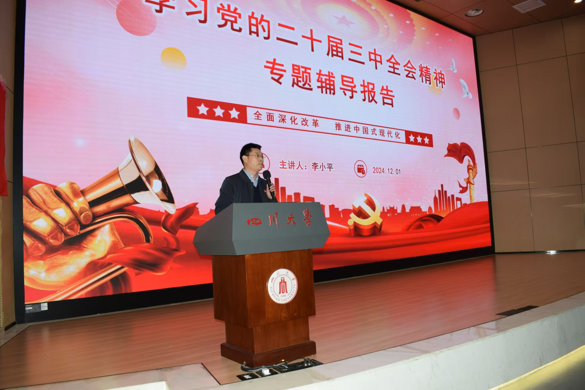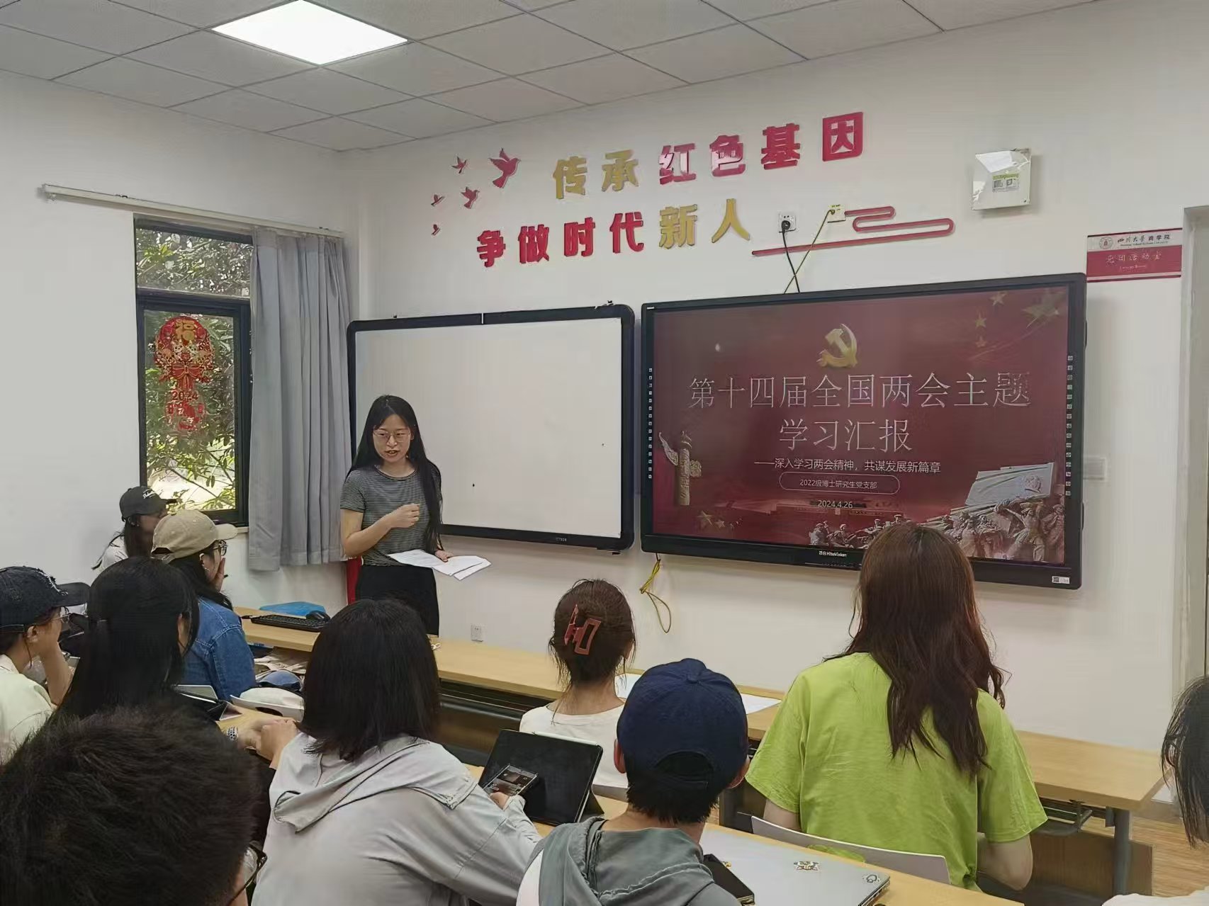 提升学生政治素养,筑牢理想信念根基。邀请院党委领导进行“全面深化改革,推进中国式现代化”专题授课,系统解读二十届三中全会核心要义;依托班团组织开展“深入学习两会精神,共谋发展新篇章”专题学习,深化国情认知;邀请我校退休教师以及百川宣讲团成员开展20余场关于新时代党的理论创新成果和重大方针政策的宣讲。通过系统开展专题学习,激发学生将理论与实践相结合的内生动力,引导学生在实践中践行青春使命。