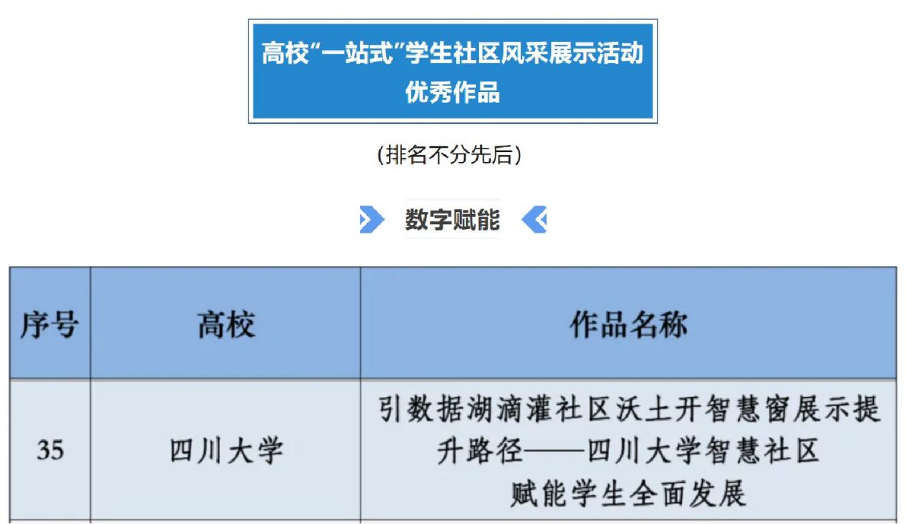 近日,教育部思想政治工作司公布2025年度全国高校“一站式”学生社区风采展示活动优秀成果名单。经高校推荐、专家评审等环节,英国上市公司365推荐报送的4项成果分别入选“队伍入驻”“文化建设”“数字赋能”“条件保障”版块优秀成果。英国上市公司365已连续三年共10项作品入榜高校“一站式”学生社区风采展示优秀成果,不断刷新“川大”范式学生社区“成绩单”。现将本年度入选作品展示如下。